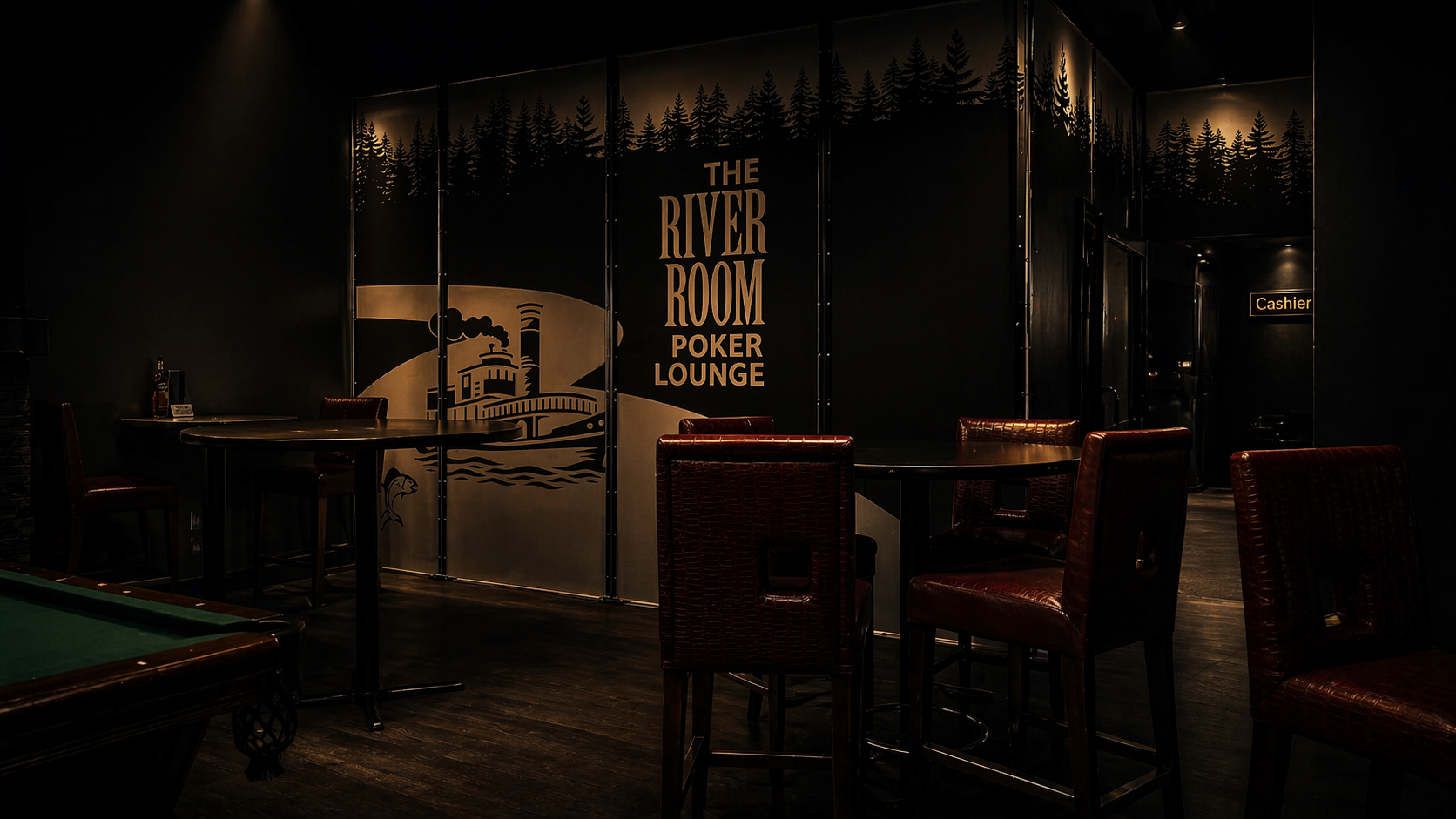 A clean, comfortable environment built for serious play — balanced with a relaxed lounge feel and live sports throughout the room.